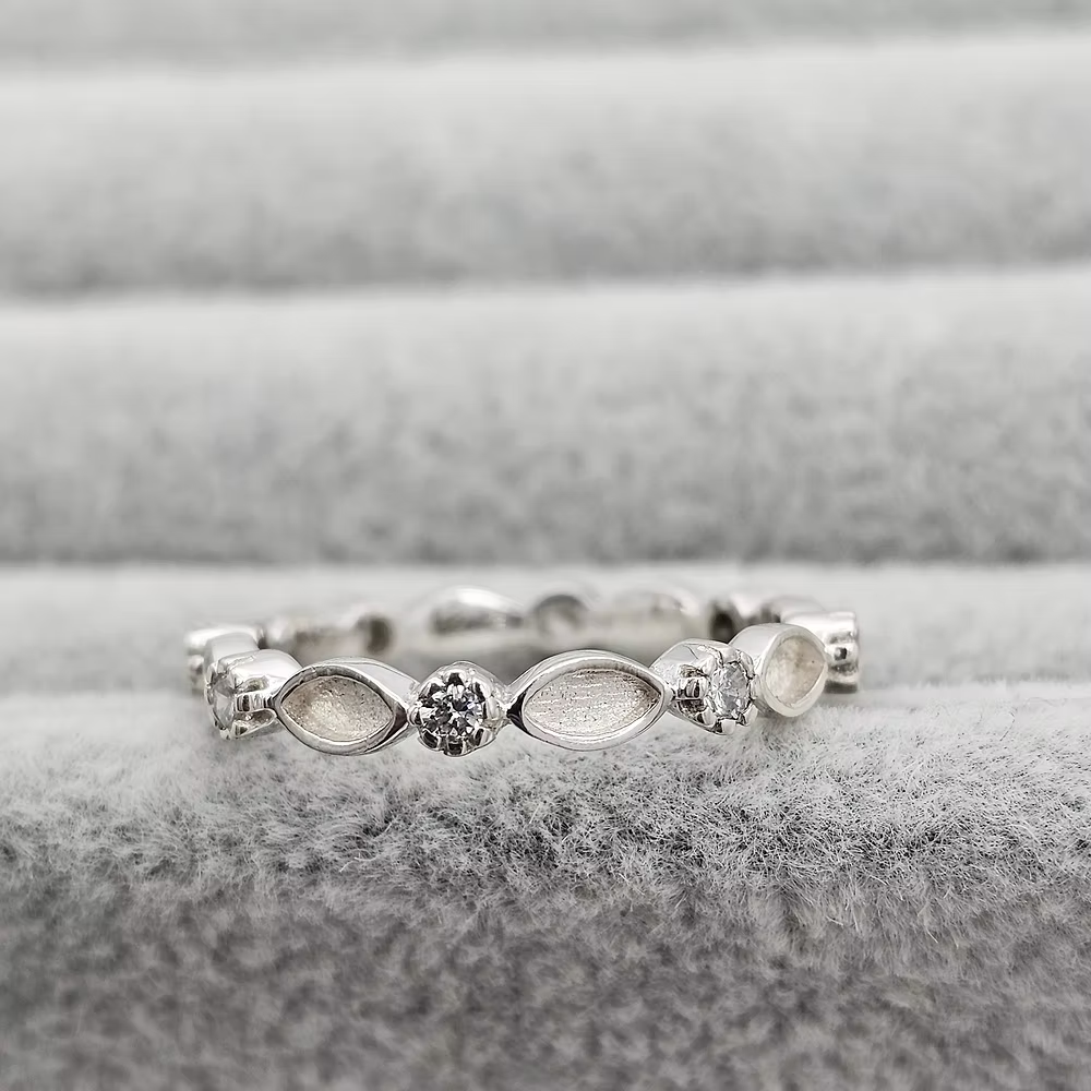 This beautiful 925 full smooth edge marquise ring is high in quality and a very popular design. Your loved one's cherished ashes will be encased within resin, available in a choice of 12 colours, all of which include crushed opal giving a beautiful iridescence. We can either place ashes above the colour layer so they are visible, or we can place the ashes underneath the colour layer so they can't be seen.