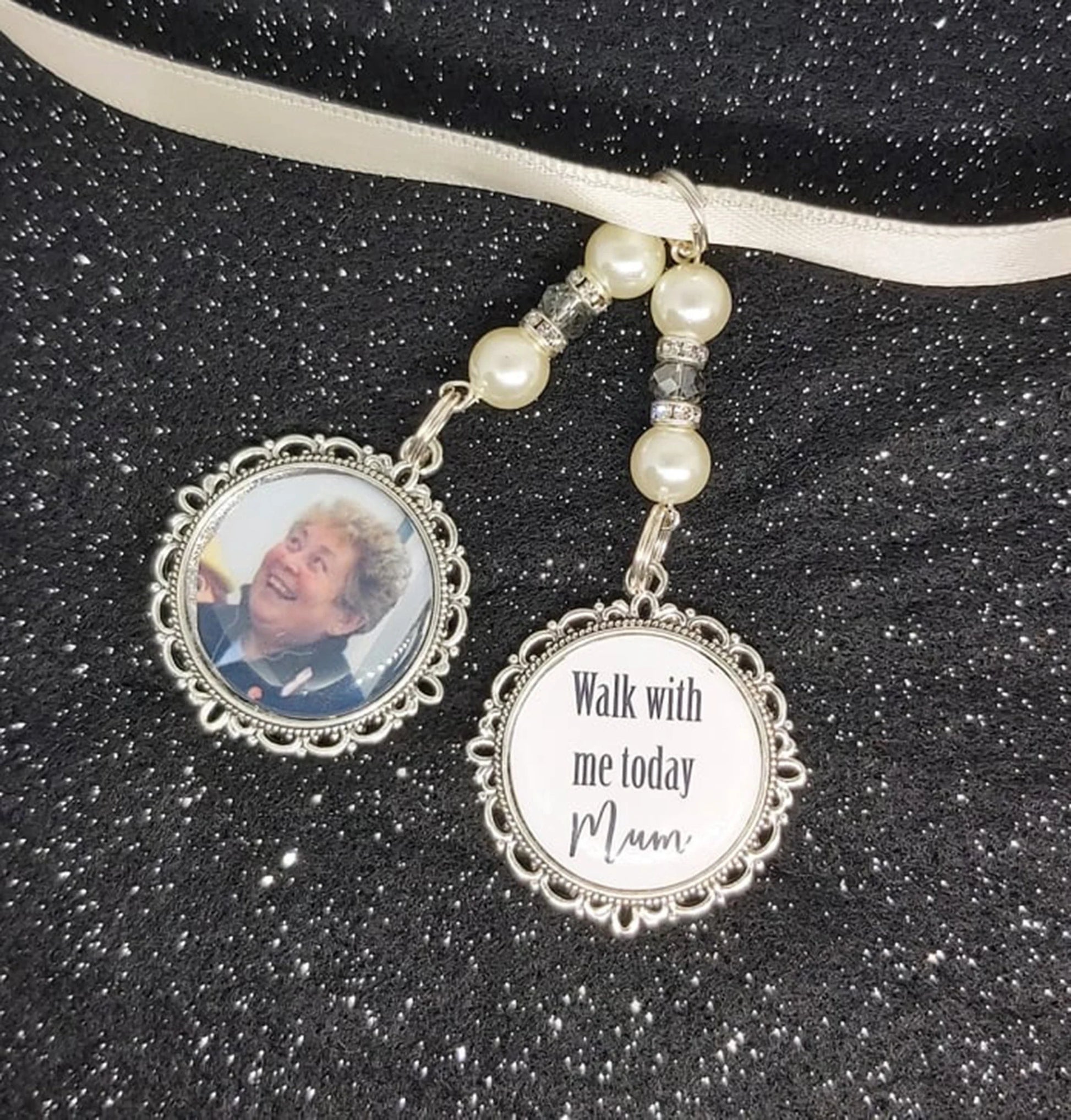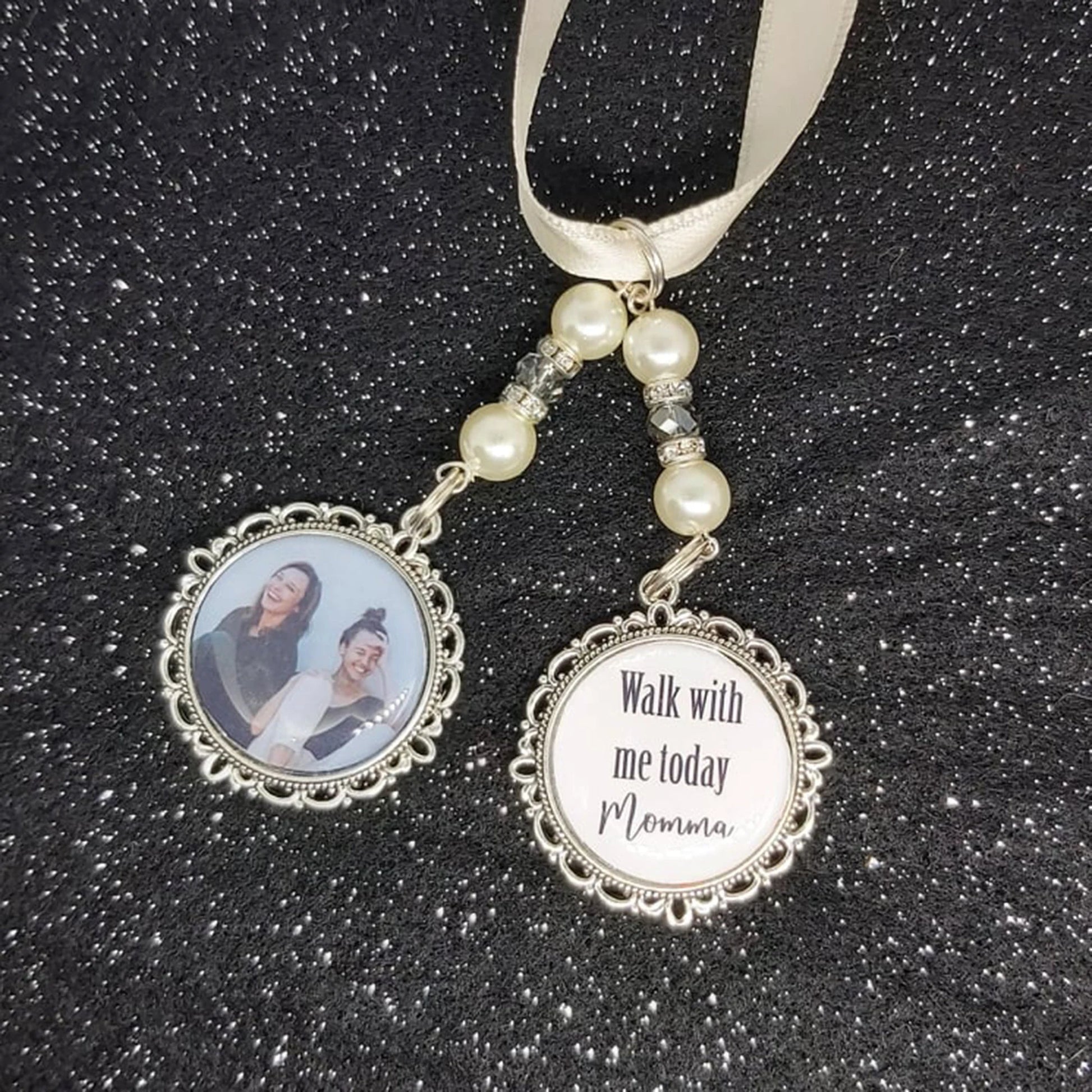 Walk with me today Momma Mum. Photo memorial wedding bouquet charm for a bridal bouquet. Name can be changed